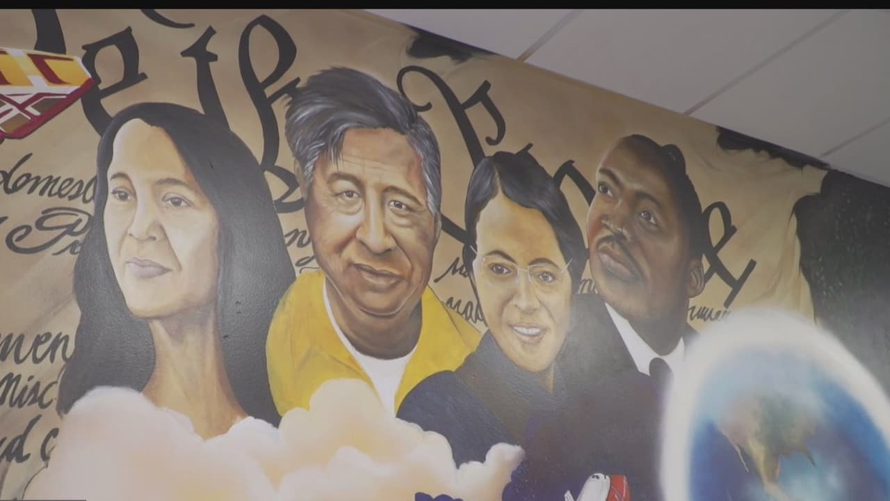 Estudiantes de HISD se unen para trabajar en un mural en conmemoración al mes de la Herencia Hispana