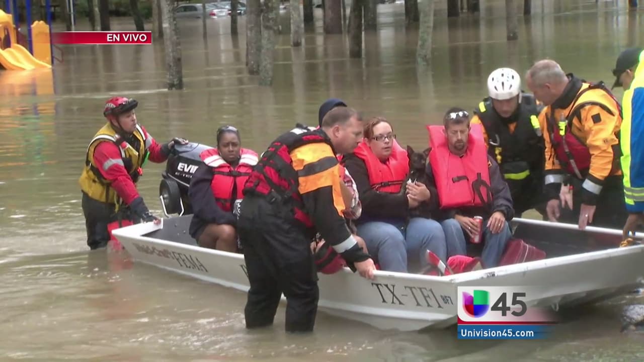 Rescatistas evacuan a decenas de personas al noreste del condado Harris, quienes habían quedado atrapadas dentro de sus apartamentos debido al alto nivel de las inundaciones