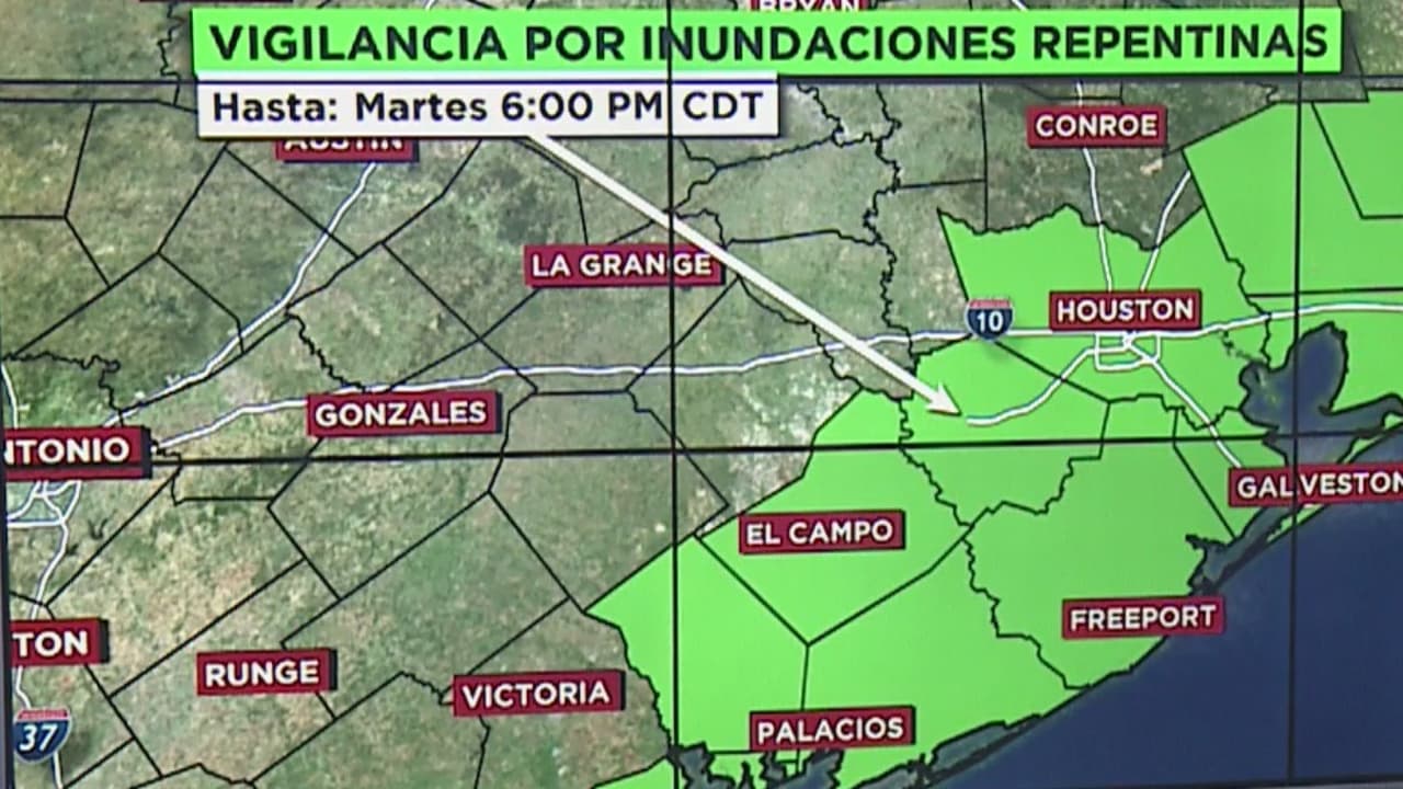 Hasta las 6:00 pm de este martes fue extendida la vigilancia en condados como Harris, Fort Bend, Brazoria, Galveston, Chambers y Liberty debido a fuertes precipitaciones.