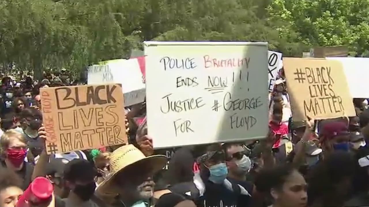 La manifestación inició en el parque Discovery Green y llegó hasta el ayuntamiento de la ciudad para transmitir el mensaje de indignación por la muerte de este afrotestadounidense, que fue asfixiado por un oficial de Minneapolis en un aparente caso de abuso policial.