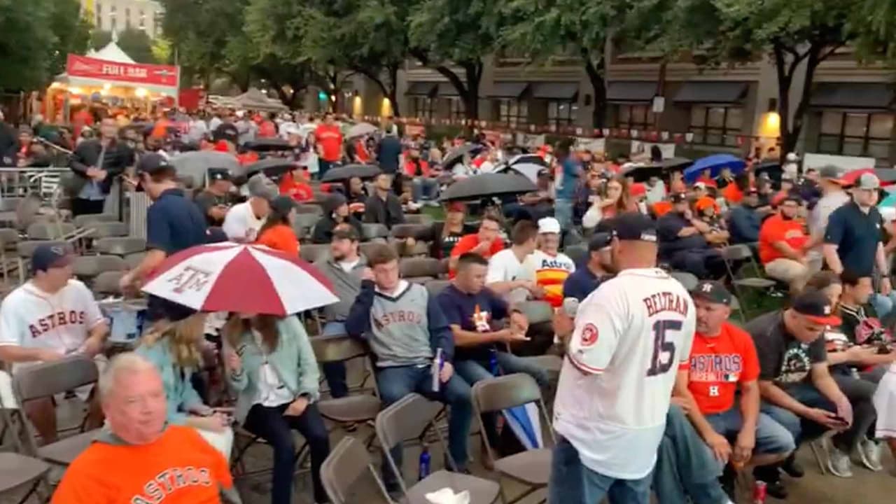 Fanáticos de los Astros se reúnen afuera del estadio para apoyar a su equipo