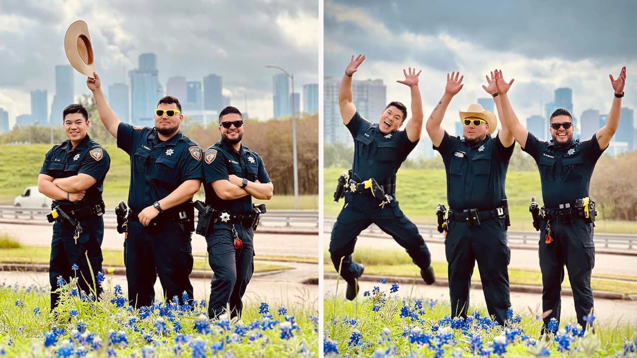 Policías del condado Harris posan en los campos de Bluebonnets y comparten sus fotografías
