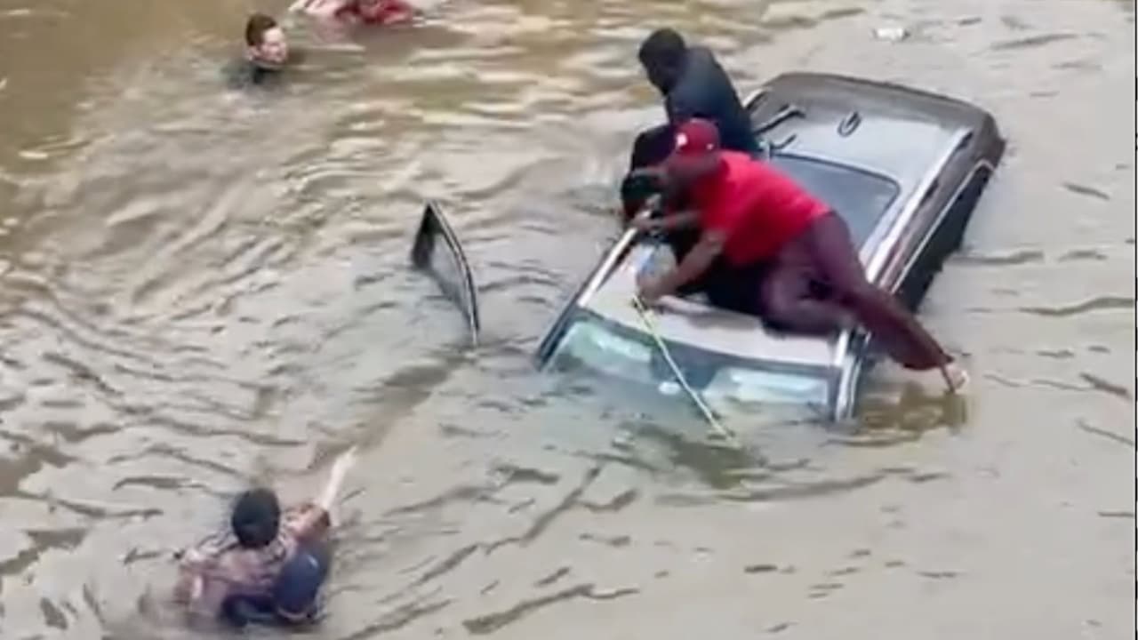Al asomarse, encontraron un automóvil cubierto por el agua y a otras personas gritando que había una persona atrapada dentro.