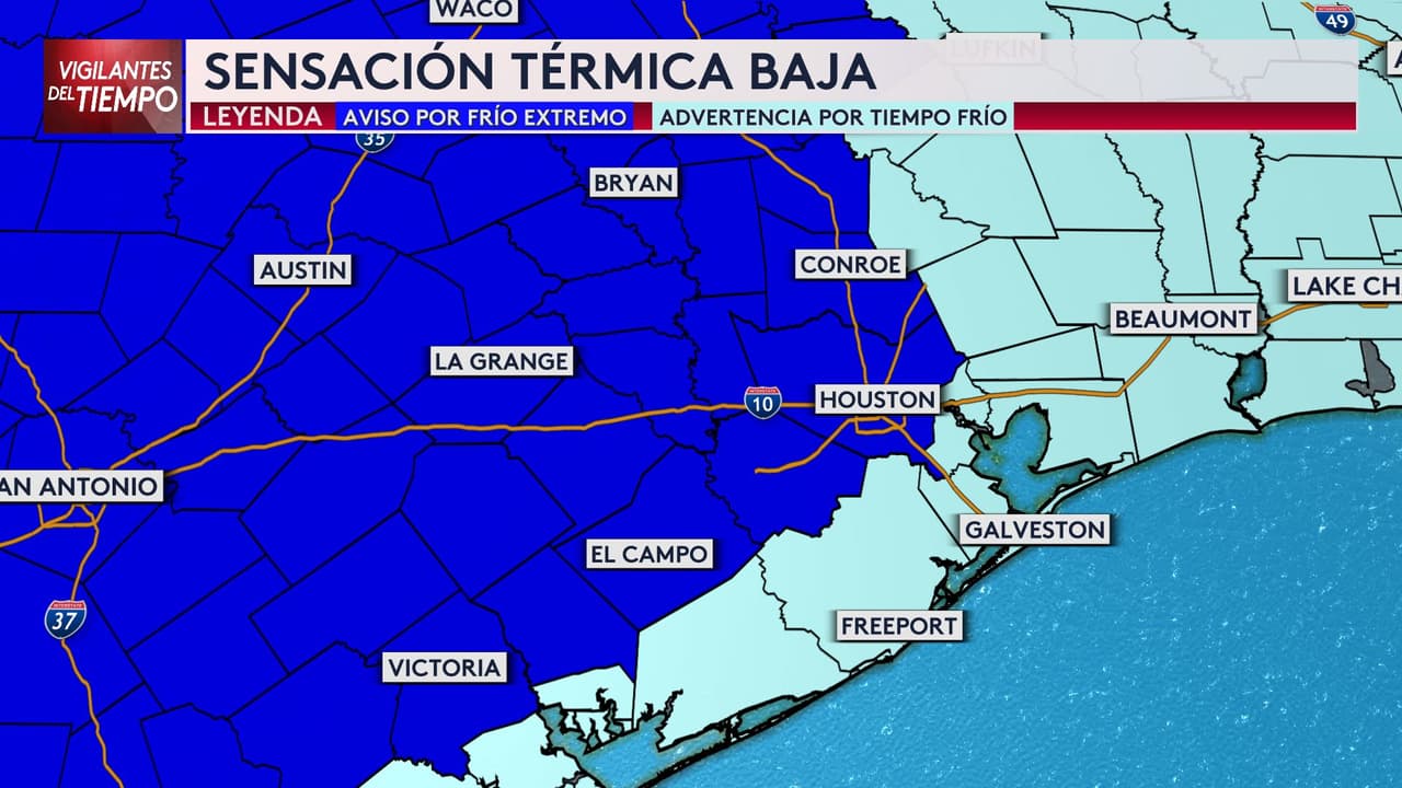 El meteorólogo Antonio Sánchez explica que hay dos tipos de alertas meteorológicas por frío extremo en diferentes áreas del condado de Harris. Además, aclara que las máximas llegarán a los 40°F, pero se sentirán en los 30°F.