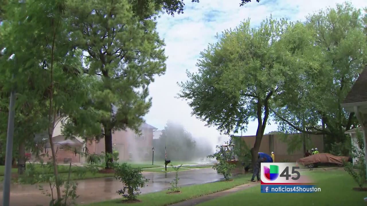 Una fuente de agua de casi 30 pies de altura fue el resultado de una fuga que paralizó a todo un vecindario, obligando a las autoridades a suspender el servicio por unas horas.