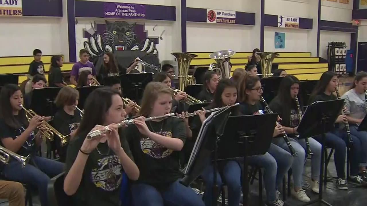 La secundaria AC Blunt de Aransas Pass recibió una donación de fondos de la Fundación Cultural Latin Grammy para que los programas de música, que se apagaron con el paso del huracán Harvey, volvieran a servir de inspiración a todos sus alumnos. Los 250 alumnos que por ahora participan de estos programas recibieron con emoción este donativo y un concierto que selló un nuevo comienzo en sus vidas.