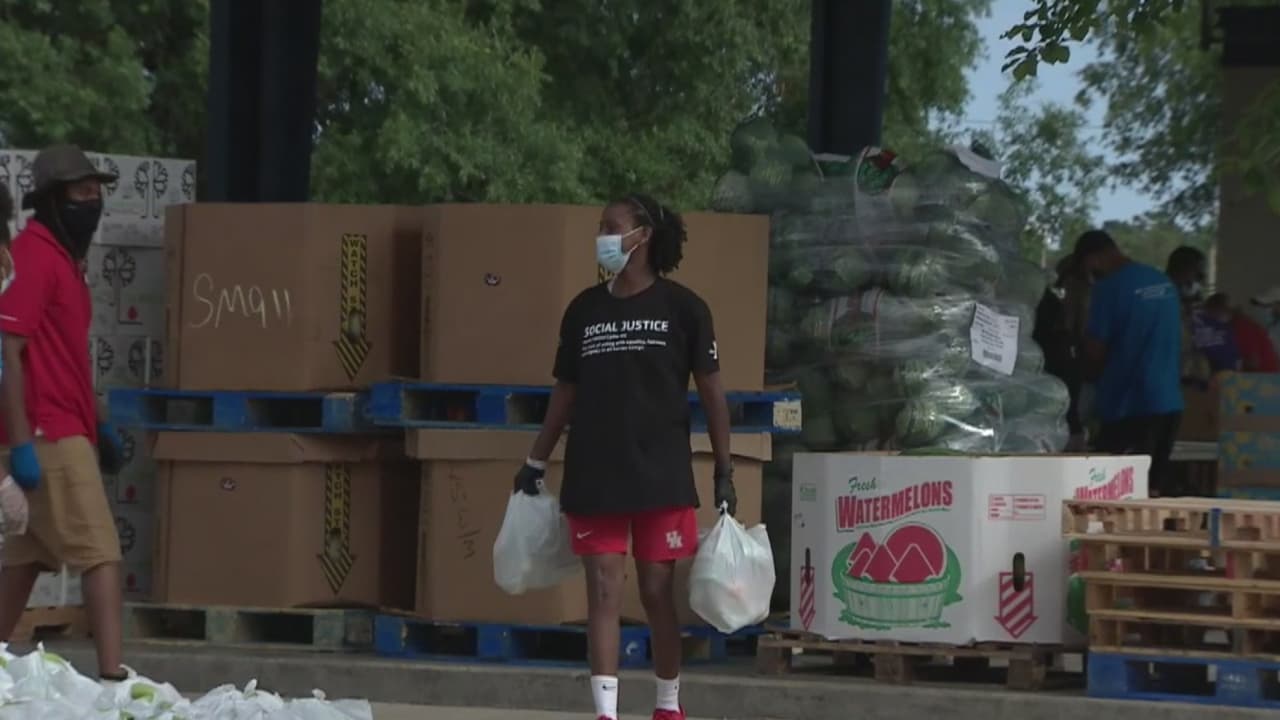Habitantes del este de Houston reciben alimentos y mascarillas para hacerle frente al coronavirus