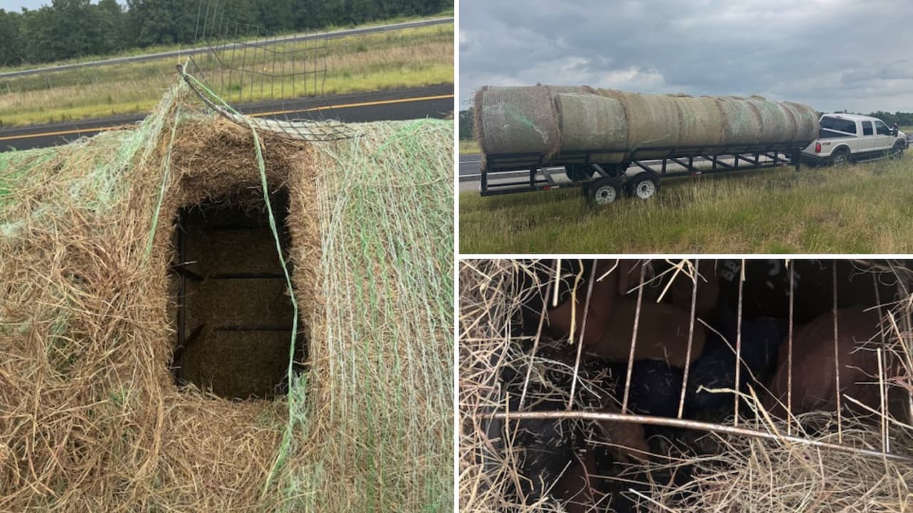 Una inspección reveló que las pacas redondas de heno habían sido alteradas y ahuecadas para crear compartimentos ocultos.