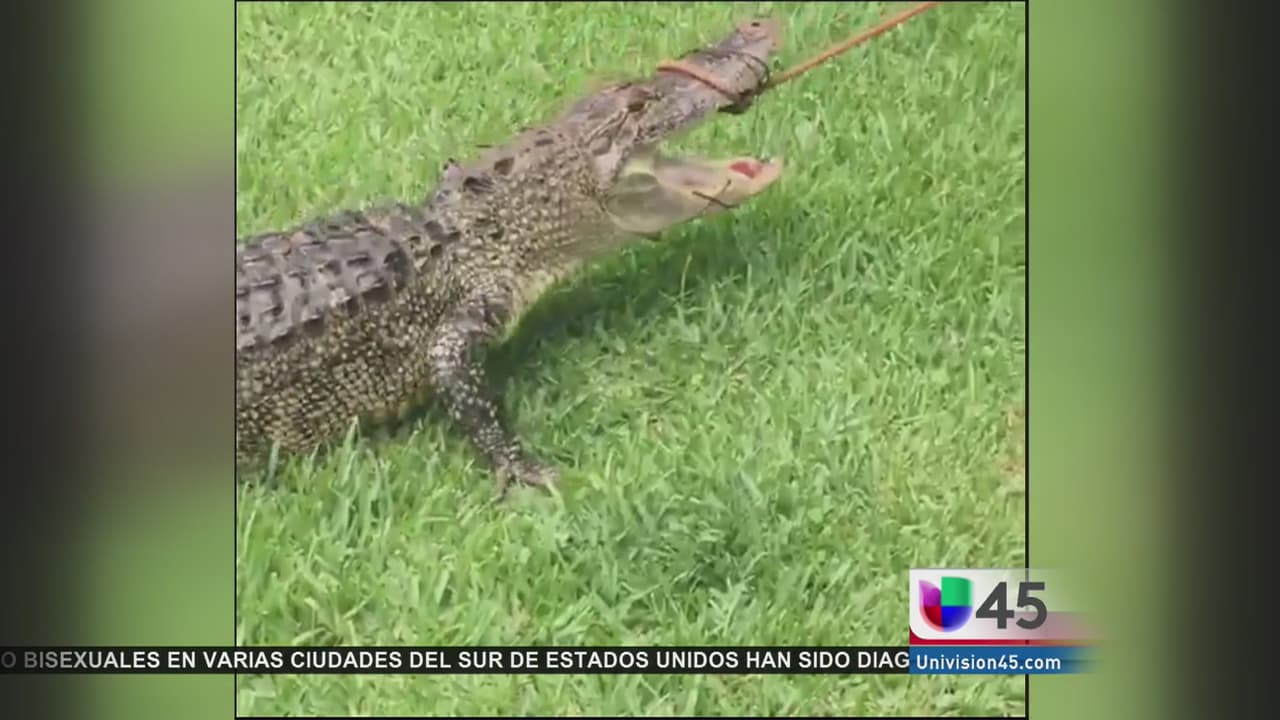 Los residentes de una casa en Missouri City, Texas, se llevaron la sorpresa de su vida cuando encontraron a un enorme lagarto en el patio de su casa.