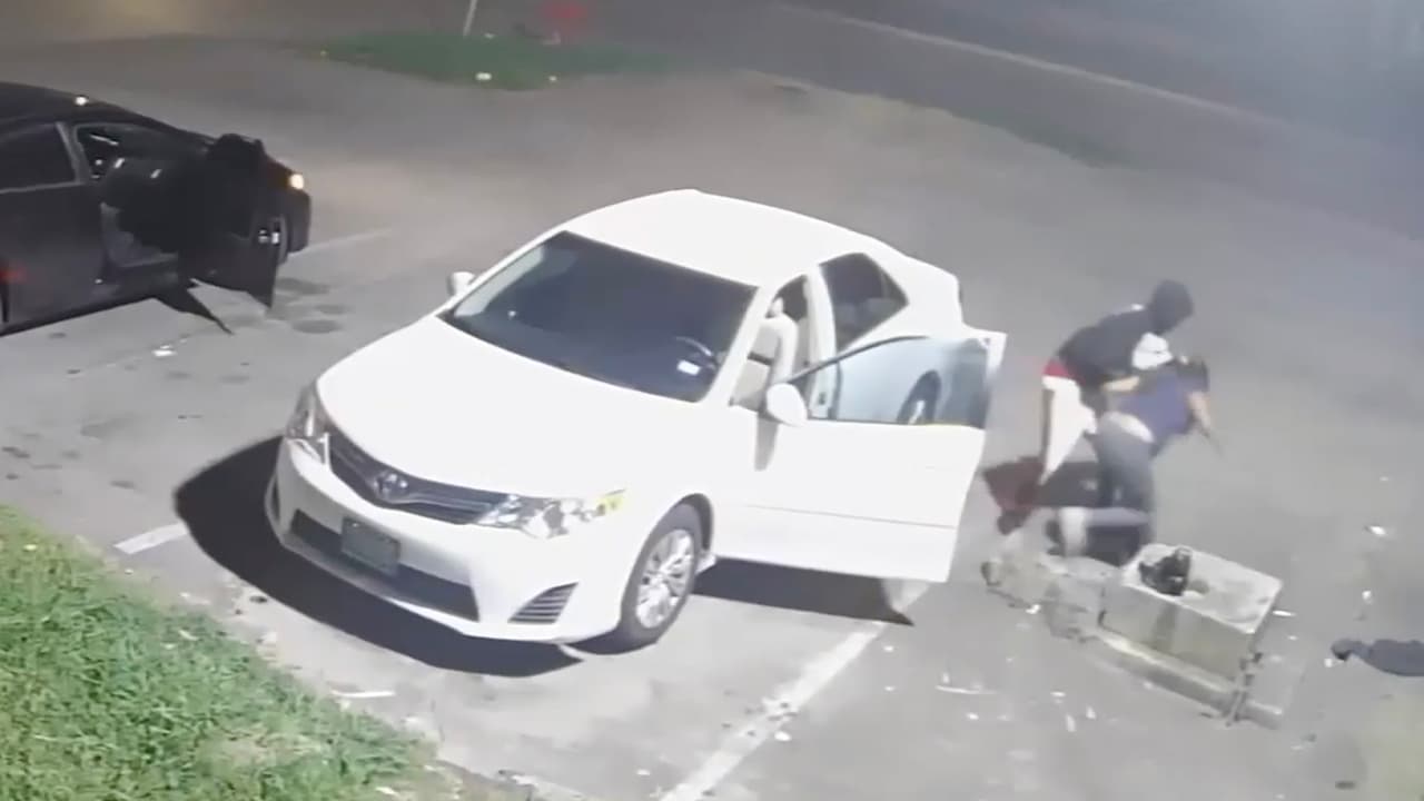 La policía describe al sospechoso como afroamericano, de contextura delgada, abordo de un Honda Civic negro. El robo ocurrió en una tienda en la cuadra 5000 de la calle Yale, al noroeste Houston. Si tiene información, puede llamar al 713-222-8477. Hay 5,000 dólares de recompensa.