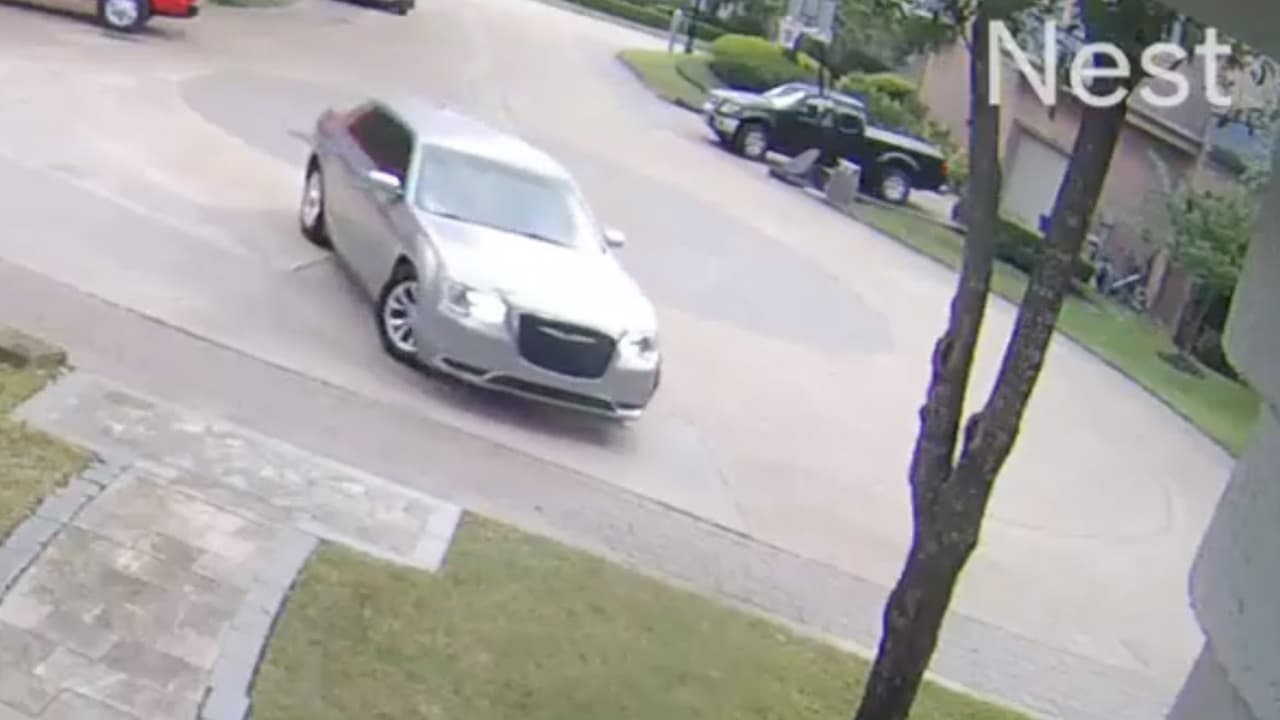 En los videos de vigilancia publicados por la policía se muestra cuando un vehículo Chrysler 300 gris con placas de papel llega a la casa ubicada en la cuadra 50 W Terrace Dr.