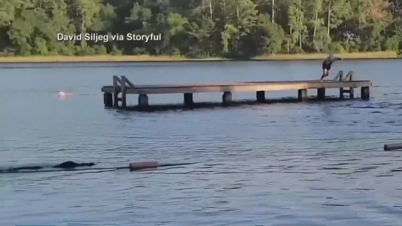 En un comienzo, los presentes pensaban que se trataba de un caimán pequeño y que se iba a alejar al ver a la gente nadando y chapoteando, según contó Siljeg a la plataforma Storyful.