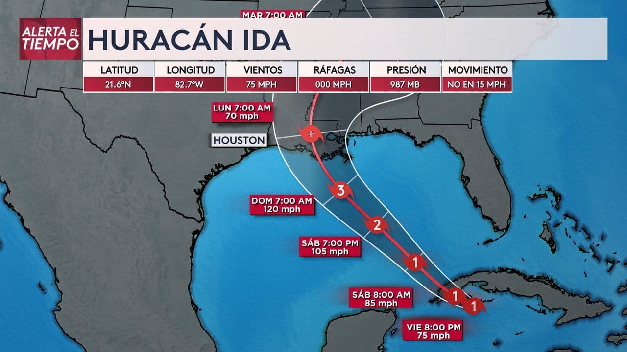 HOUSTON, Texas. - El huracán Ida podría convertirse en categoría 4 al tocar tierra en el Golfo de México , el cual lleva vientos sostenidos de 75 millas por hora.
