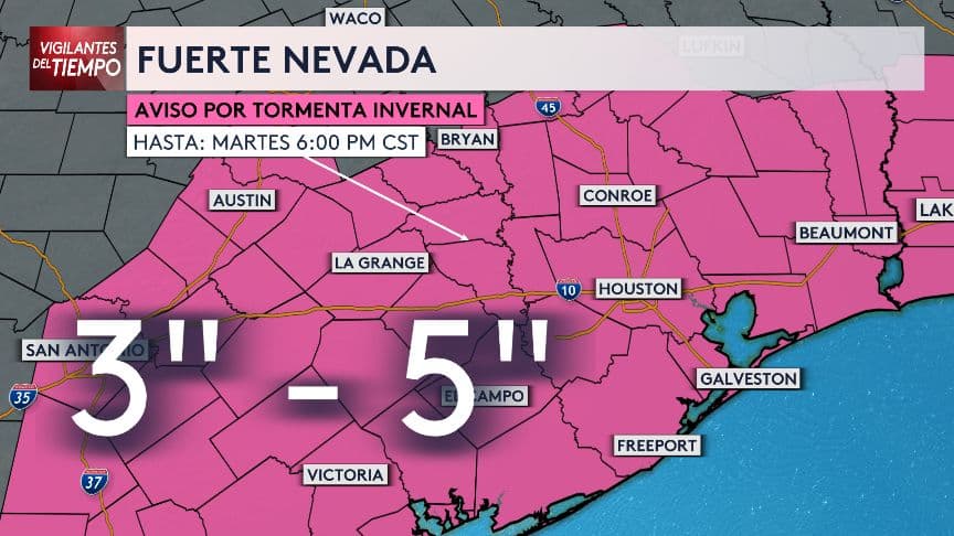 entre 3 a 5 pulgadas de nieve también para los condados de Fort Bend y Chambers.