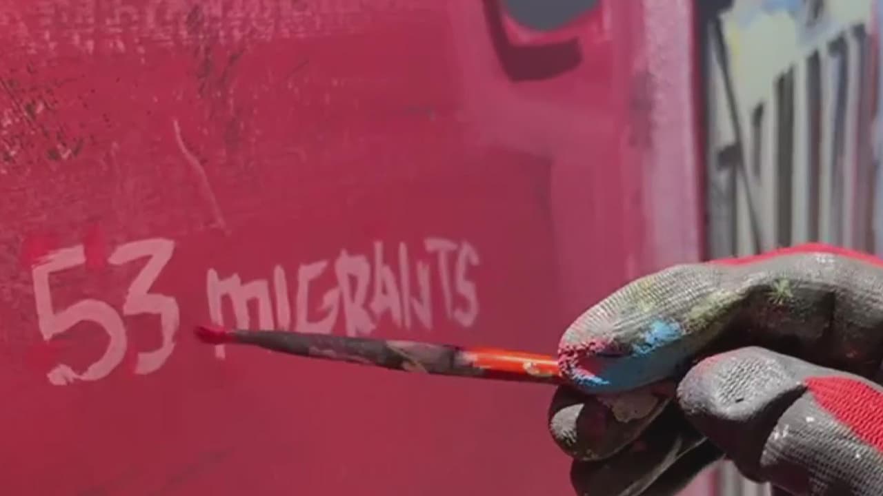 Construyen monumento para honrar las muertes de 53 inmigrantes hallados dentro de un tráiler en el 2022