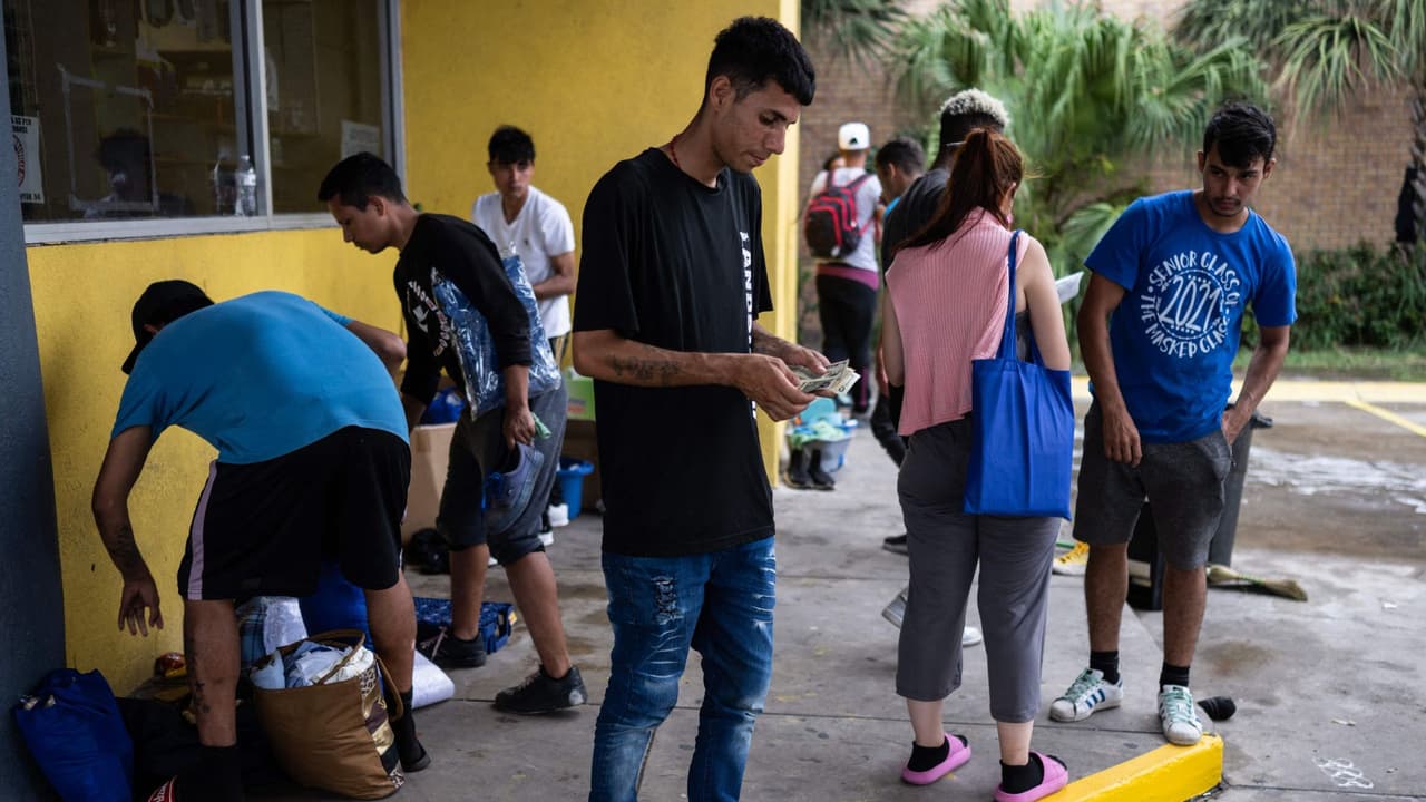 En esta ciudad de Texas se está registrando una gran actividad por la llegada de cientos de inmigrantes, quienes son llevados por miembros de la Guardia Nacional y de la Patrulla Fronteriza al centro de procesamiento. Muchas de las familias llegan con poco dinero y no tienen cómo subsistir, por lo que algunas personas han optado por trabajar temporalmente lavando autos para pagar los pasajes a sus ciudades de destino.