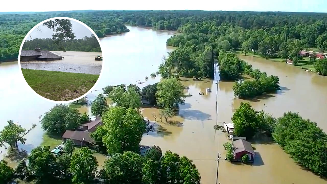 San Jacinto River Authority's está liberando 16,105 pies cúbicos por segundo desde el Lago Conroe debido a las lluvias, elevando el nivel del lago a 201.77 pies.