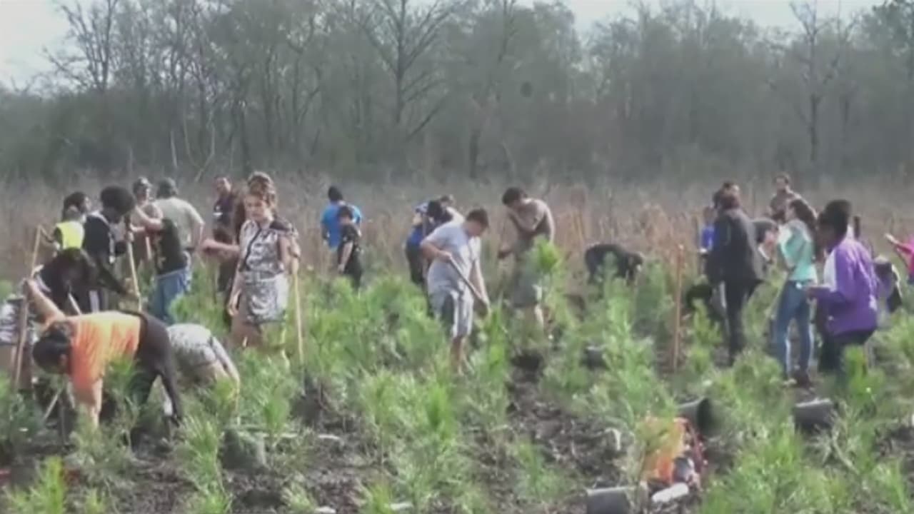 El alcalde Sylvester Turner ayudó a sembrar árboles en los parques de Houston junto a decenas de voluntarios de la empresa Apache Corporation.