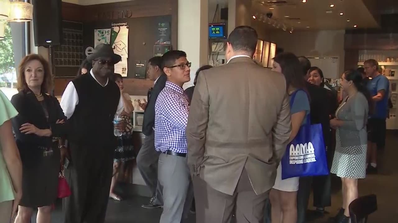 Líderes de los centros educativos de la organización AAMA de Houston se reunieron con estudiantes y también con representantes de la cadena Starbucks. En esta reunión, celebraron los logros de estos egresados de los programas de asistentes de medicina. La fundación Starbucks es una de varias empresas que están auspiciando la labor de AAMA, y se reunieron con la comunidad para escuchar sobre sus necesidades.