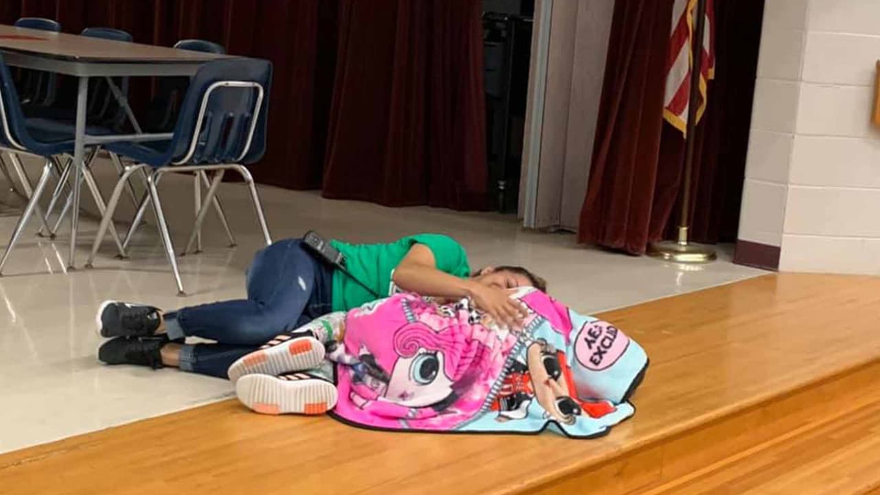 HOUSTON, Texas. – La fotografía de la conserje Esther, una empleada de la escuela primaria Passmore de Alvin ISD, acostada en el piso abrazando a una menor del 4º grado, se hace viral después que la madre la publicó la imagen en las redes sociales.