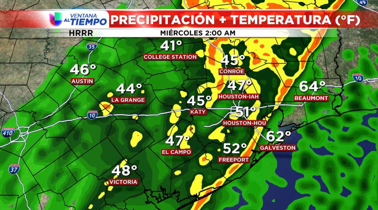 El termómetro se ubicará como máxima en los 50 grados Fahrenheit por la noche y la madrugada del miércoles, el Servicio Meteorológico Nacional prevé lluvias ligeras también.