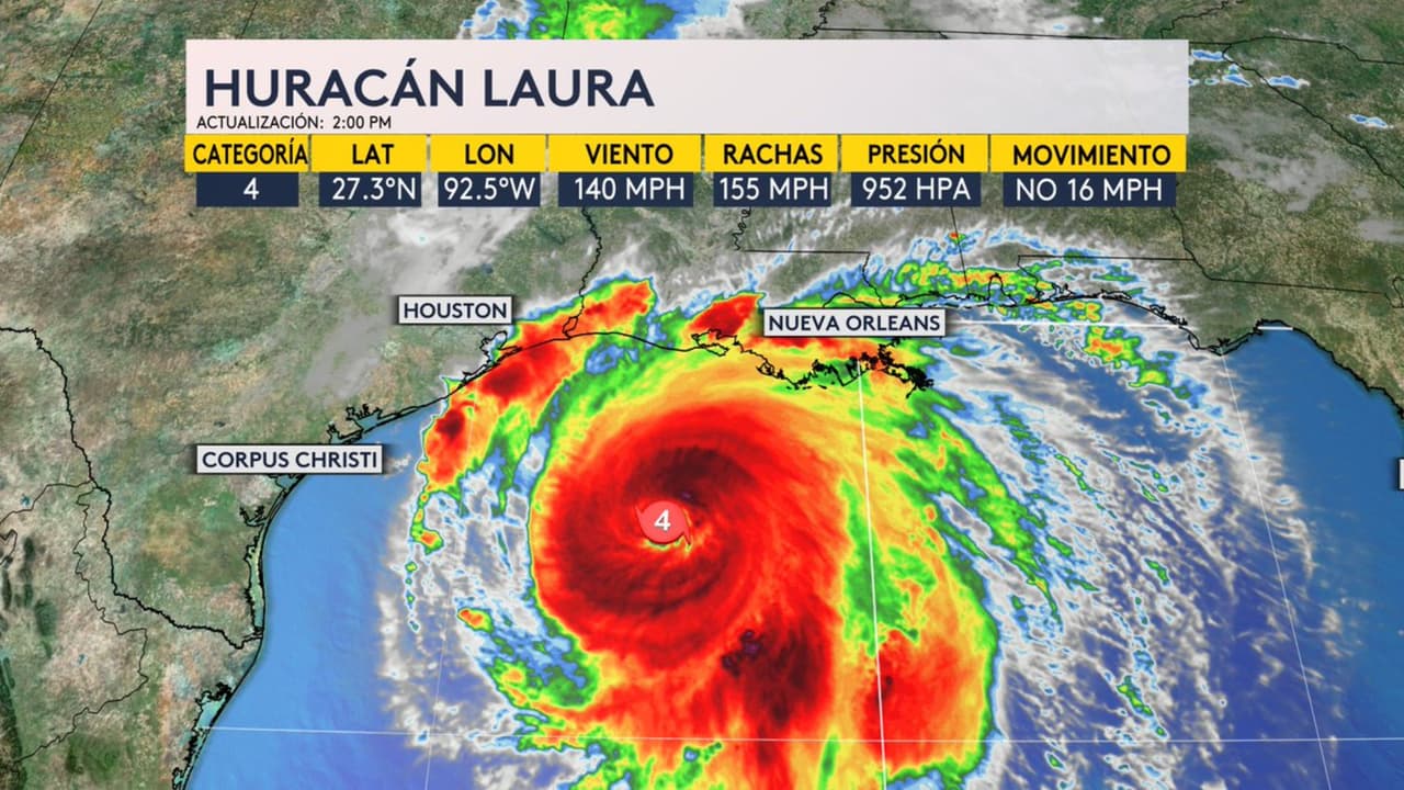 Laura se convierte en un potente huracán categoría 4 con vientos máximos sostenidos de 140 mph