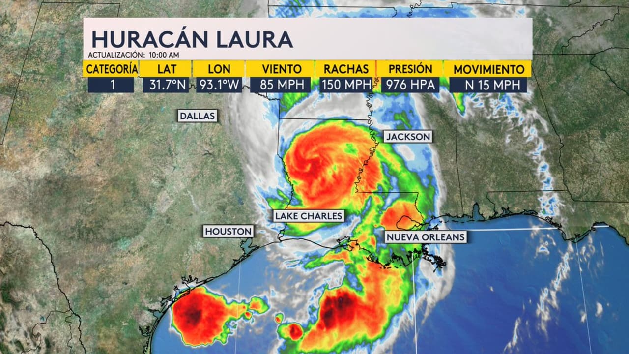 Laura se degrada a huracán categoría 1 a medida que viaja hacia el norte a través de Louisiana