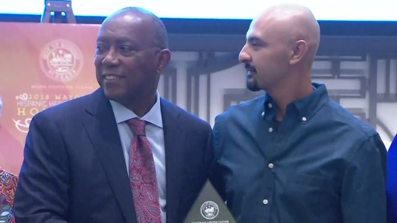 El alcalde de Houston Sylvester Turner fue el encargado de presidir el evento conmemorativo al mes de la herencia hispana. Los galardonados fueron Mario Figueroa, Stella Mireles, Rebeca Treviño y Homero Benavides por su labor en temas de arte y educación.