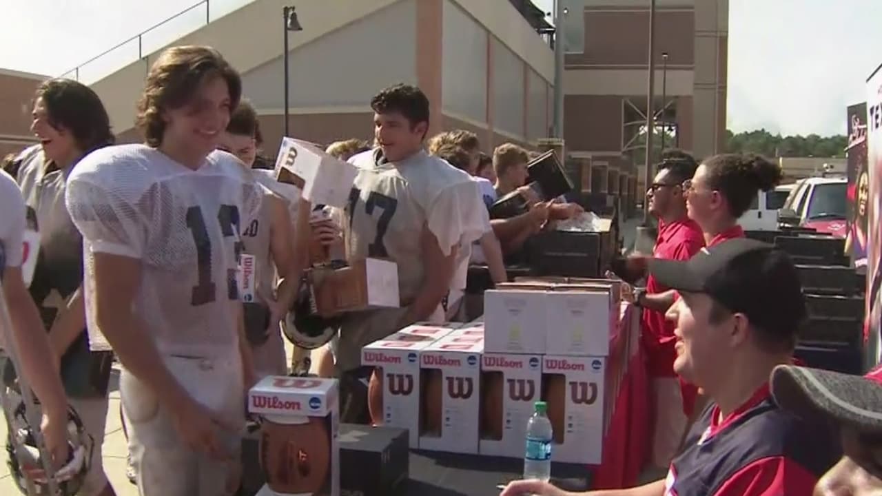 Los jugadores de fútbol americano de la Preparatoria Kingwood no solo disfrutaron de la presencia de los Texans, sino además recibieron la donación de implementos deportivos, como zapatos y balones que habían perdido en el huracán.