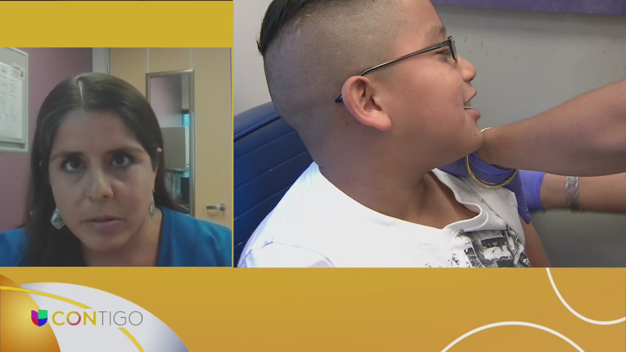 Cassandra Duran, enfermera avanzada de familia del programa de clínicas móviles de Texas Children’s, explica que es requisito que los menores tengan el esquema de vacunación completo antes del regreso a clases.