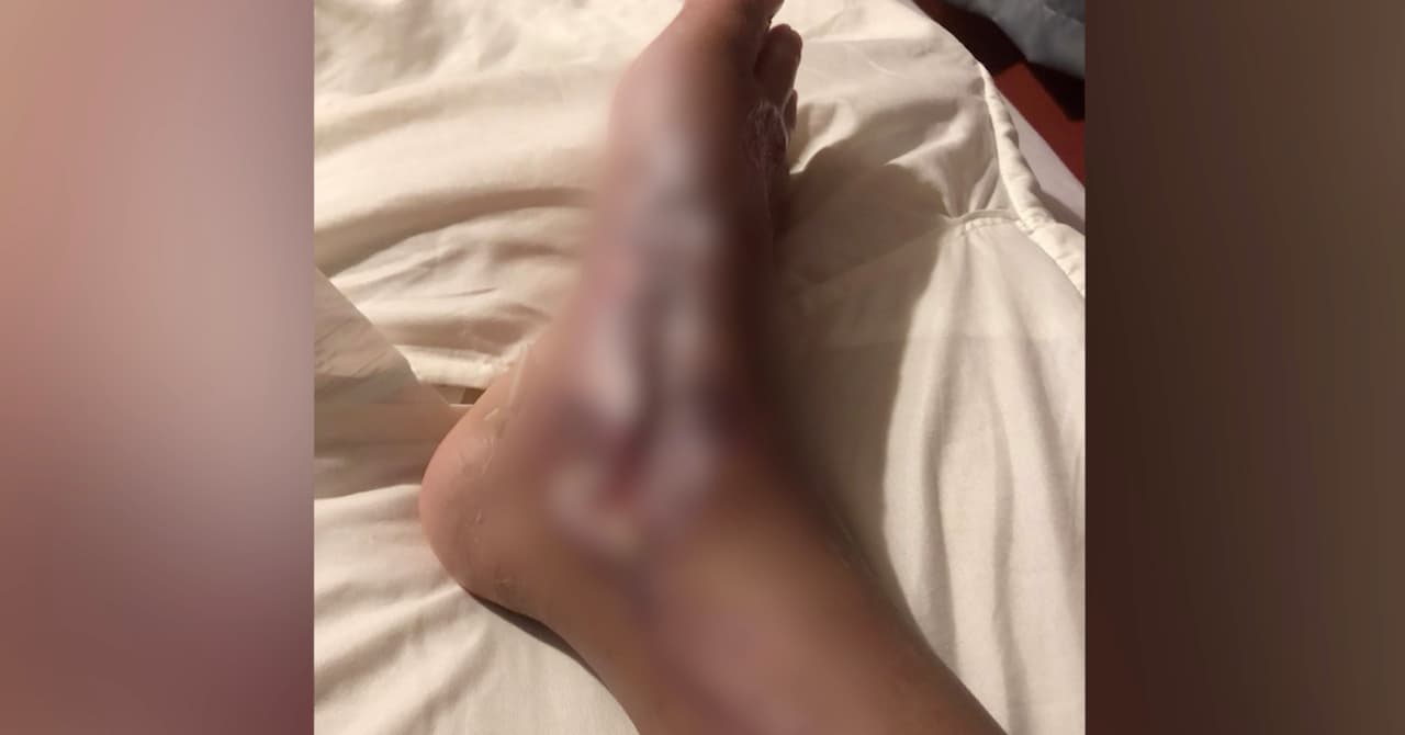 La madre hispana no tiene movilidad total del pie, dice que por momentos siente "punzadas" y asegura que dormir le cuesta mucho por la posición que debe permanecer.