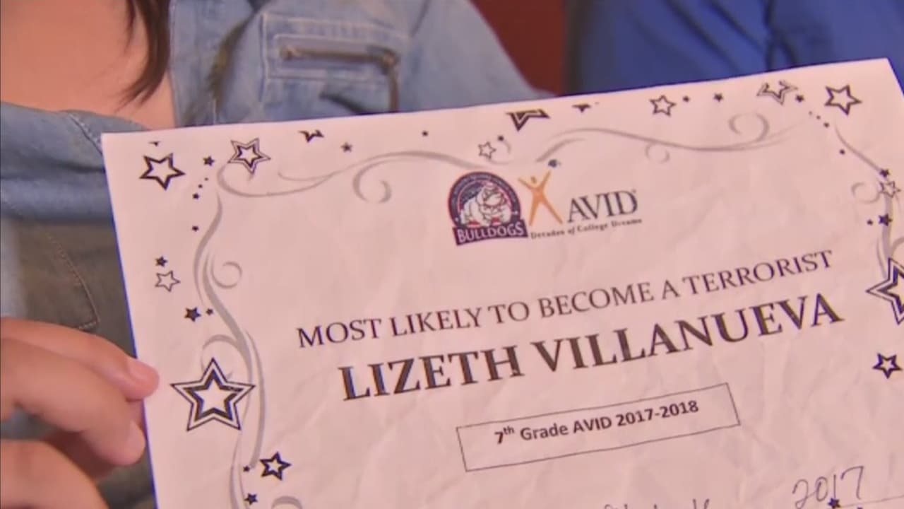 Una escuela del área de Channelview ha penalizado a varios maestros luego de haber hecho una supuesta broma de muy mal gusto a una de sus estudiantes. Esta estudiante de 13 años de edad dice que no le pareció nada gracioso el haber recibido un certificado que la nombra una futura terrorista. Ella ahora pide que esta maestra sea despedida.