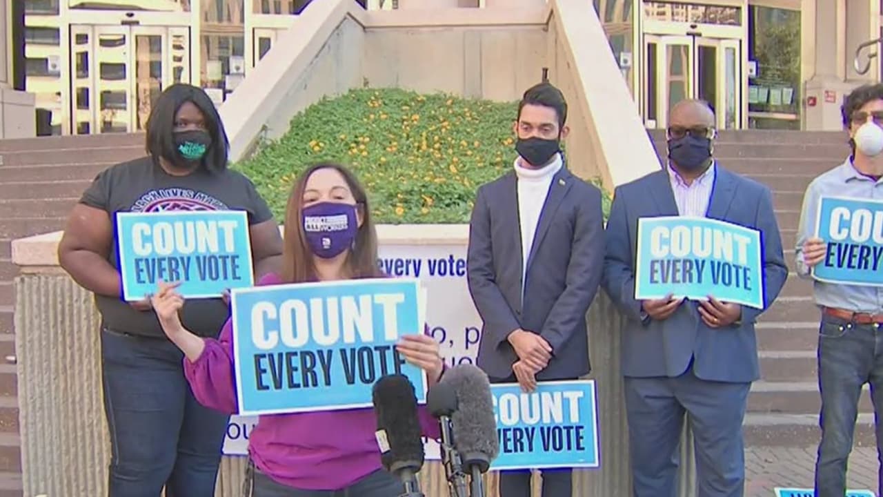 Manifestaciones en el centro de Houston exigen el conteo minucioso de votos para definir las elecciones presidenciales
