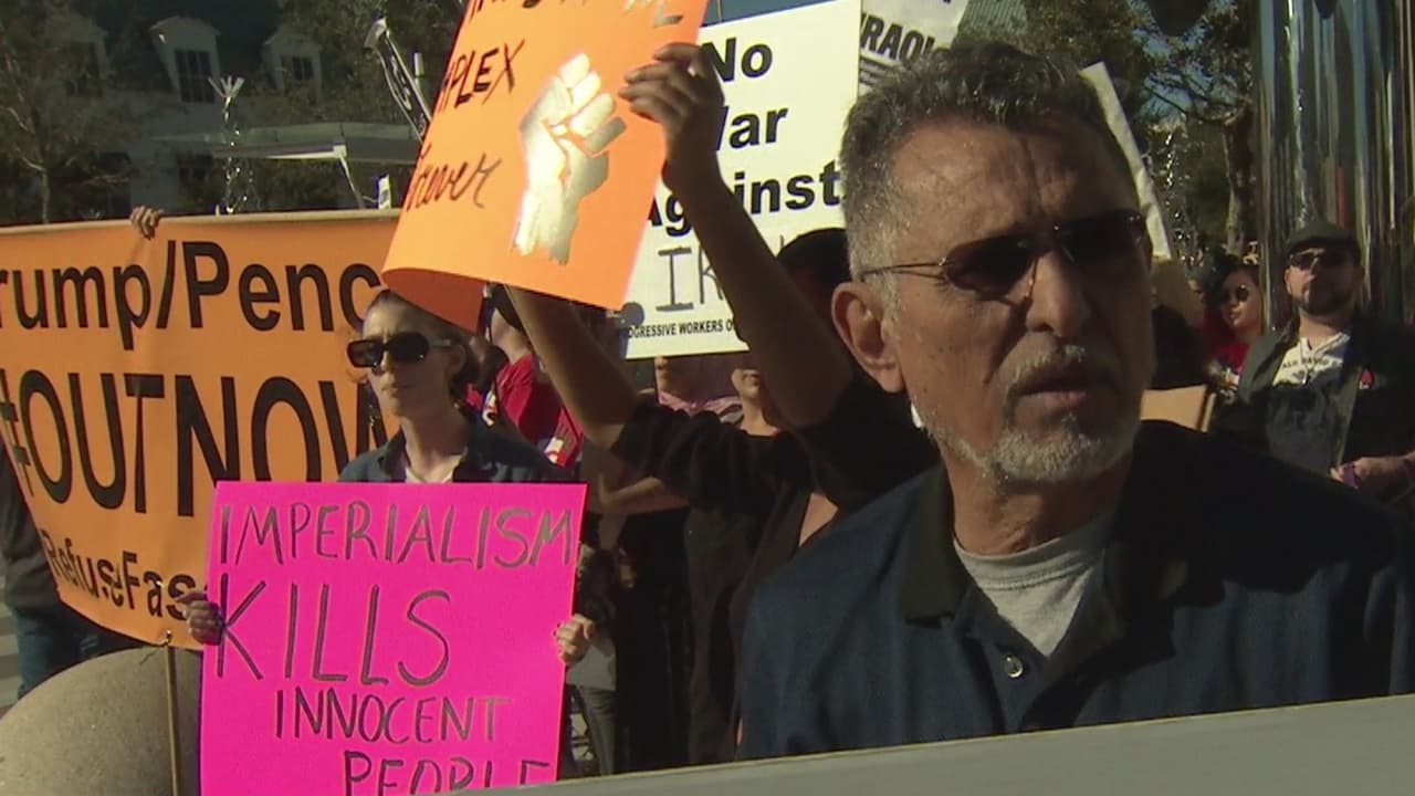 Cientos de personas han salido a las calles este fin de semana para protestar contra las acciones del presidente Trump, quien ordenó un ataque militar para acabar con la vida del máximo general de Irán. Los residentes piden al mandatario tener “más sabiduría” y evitar el conflicto.
