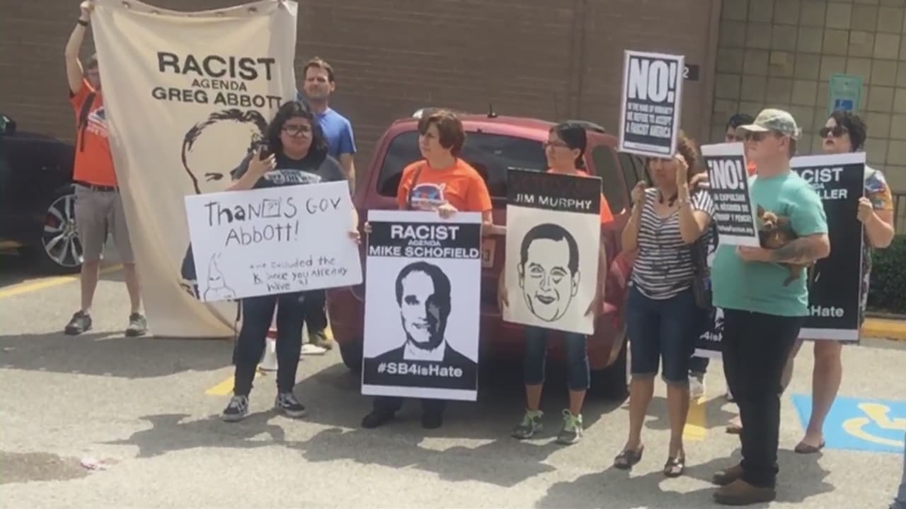 Las protestas se dan luego de que el gobernador de Texas, Greg Abbott, firmara la ley SB4, una ley contra contra jurisdicciones santuario que permite a la policía preguntar sobre el estatus migratorio de una persona y amenaza a los alguaciles con la cárcel si no cooperan con las autoridades federales en la identificación de indocumentados.
