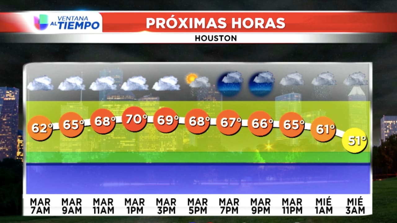 La temperatura máxima para este día alcanzará los 70 grados Fahrenheit, pero habrá un descenso significativo en horas de la tarde. Se pronostican tormentas para hoy en la noche y la madrugada del miércoles.