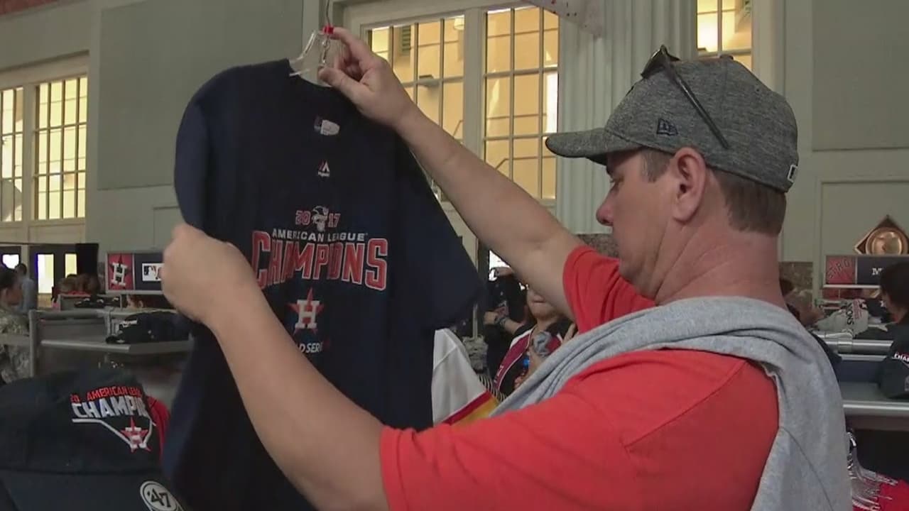 Miles de aficionados siguen comprando recuerdos alusivos al campeonato de los Astros
