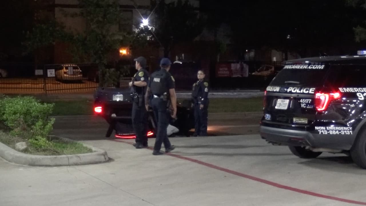 Cuatro personas viajaban en un Dodge Charger a exceso de velocidad cuando perdió el control, chocó contra un poste de luz y se volcó, hiriendo a la víctima que estaba caminando por calle, según dijo la policía de Houston.