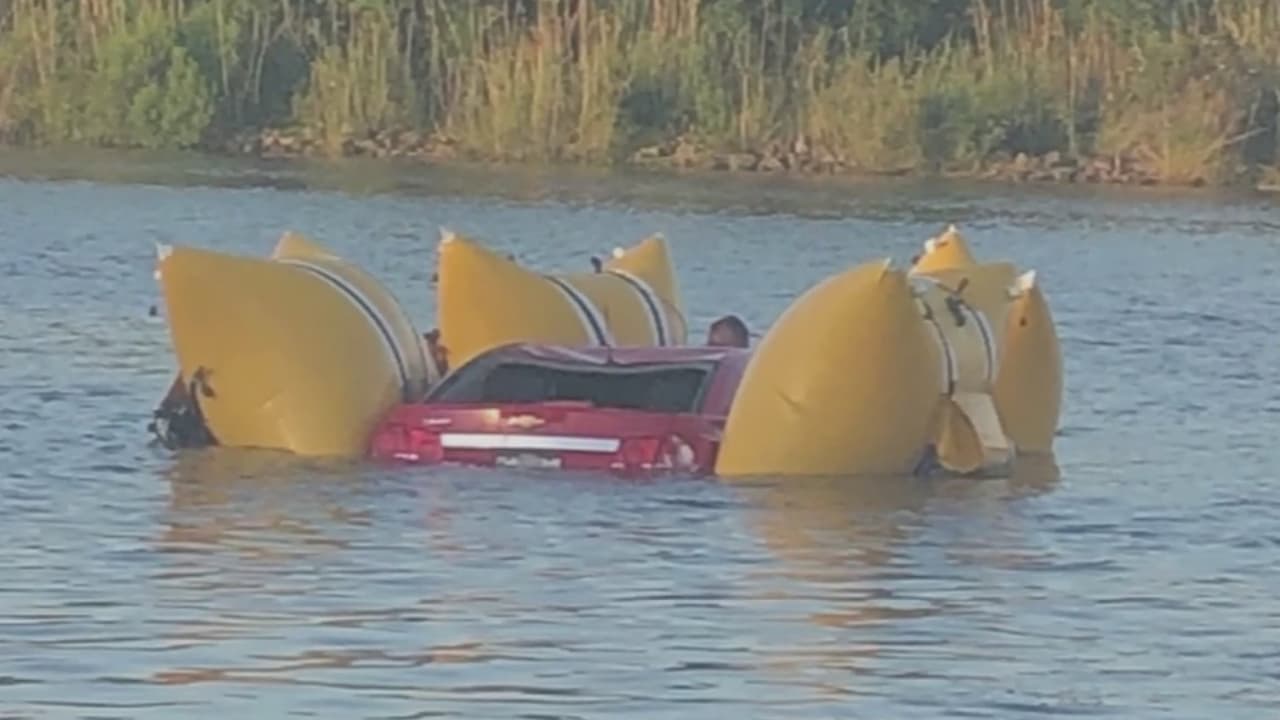 “El conductor avanzó por debajo de la barricada, recogió a su acompañante y continuó manejando hacia la rampa al final del puente. Se detuvo brevemente, retrocedió y aceleró en un intento por saltar la rampa. El auto voló y fue a parar en un canal, donde terminó hundido”, se lee el recuento de los hechos de policía.