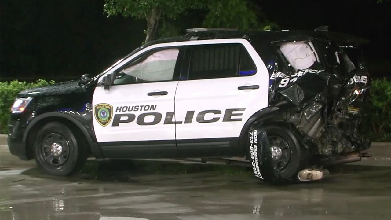 Mujer se estrella contra dos patrullas policiales que a su vez atendían un accidente en Houston