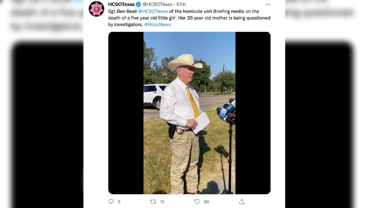 Ed González, sheriff del condado Harris, informó inicialmente en Twitter que al parecer, la madre fue quien apuñaló a la menor.