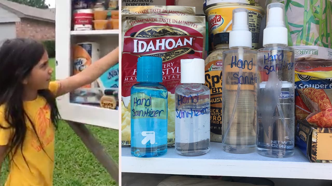 La niña ubicó la alacena portátil frente a la casa de donde vive con su familia en Friendswood, un poblado al sureste de Houston, y la mantiene llena con productos donados por vecinos para quien los necesite.