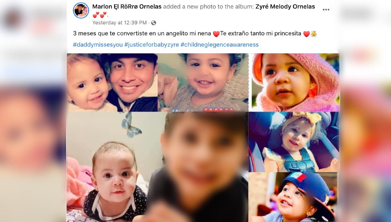 Zyre Ornelas, de 2 años, murió en un hospital el 27 de noviembre de 2021. Su autopsia reflejó que fue víctima de golpes, siendo el último mortal. El novio de su madre, Jehu Martínez, está acusado del asesinato de la menor. Lo arrestaron, pero salió en libertad tras pagar la fianza.