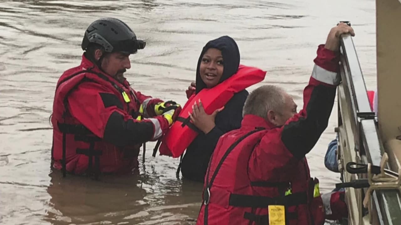 El jefe del Departamento del Alguacil del Condado de Harris, Ed González, precisó que durante todo el día se han registrado rescates de personas debido a las anegaciones, por lo cual tienen lanchas y camiones grandes destinados para tal fin. Sugirió a la comunidad no transitar por áreas que se encuentren con acumulaciones de agua y tratar de estar en lugares altos de las edificaciones.