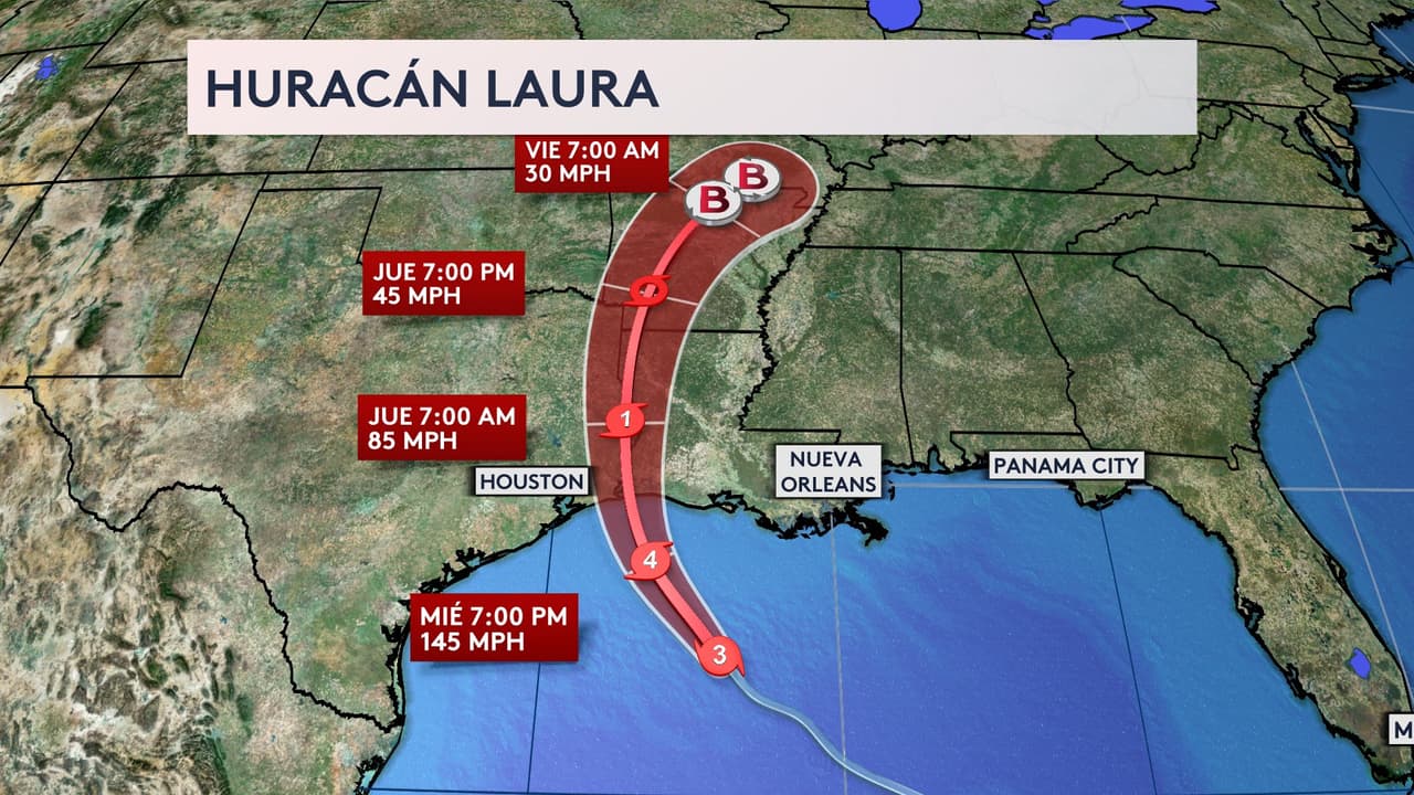 Se espera que Laura se convierta en un potente huracán categoría 4 antes de tocar tierra cerca de la medianoche en algún punto de la frontera entre Texas y Louisiana. Este miércoles, el ojo del huracán está a unas 200 millas del punto de posible impacto.