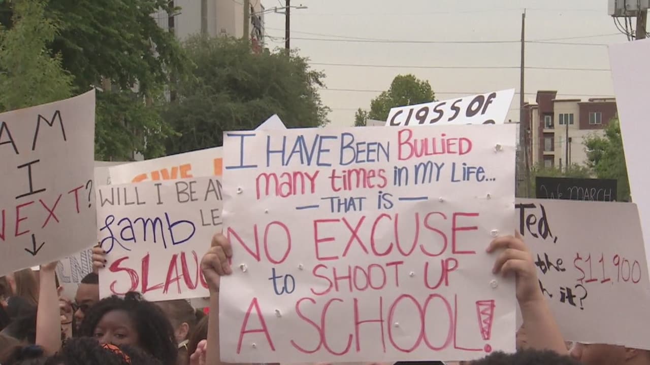 Miles de estudiantes en Texas salieron de sus aulas para unirse a una jornada nacional de marchas para exigir mayores restricciones en la venta de armas. En Houston la cita fue en el parque Wiley para marchar hasta el edifico del ayuntamiento donde recibieron el apoyo de algunos líderes y empleados públicos.