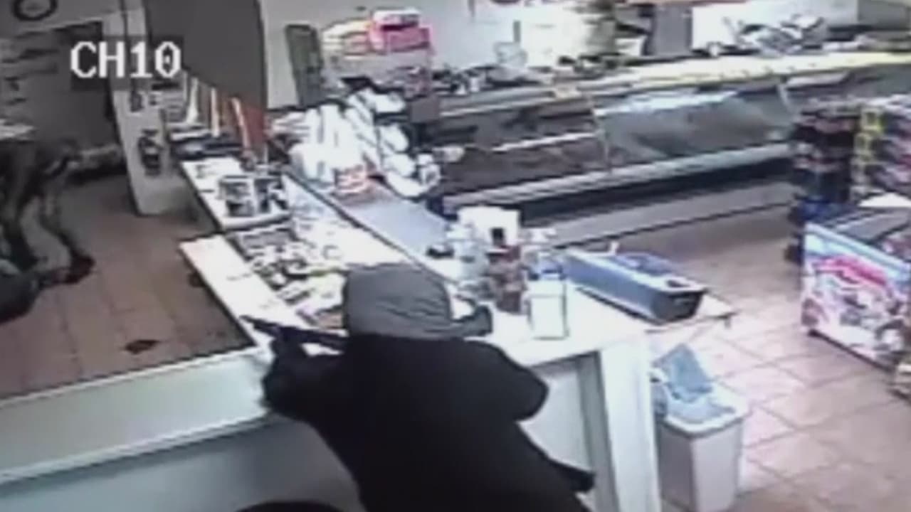 El video captó el momento cuando uno de los sospechosos arrastra a una mujer hasta un área detrás del mostrador, pero no se aprecia qué la estaba forzando a hacer. Otro de ellos, requisa a un hombre tirado en el suelo y le saca de su bolsillo lo que parece ser su billetera. Un tercero, trata de romper el cristal de la oficina desde donde se hacen envíos de dinero a puntas de golpes con el rifle, pero no lo consigue.