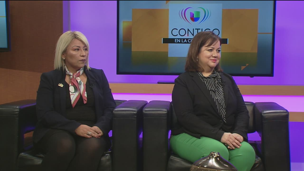 Brenda A. Rangel, del Tejano Center for Community Concerns y Elizabet Guerrero, del Colegio Comunitario de Houston explican los programas educativos disponibles.
