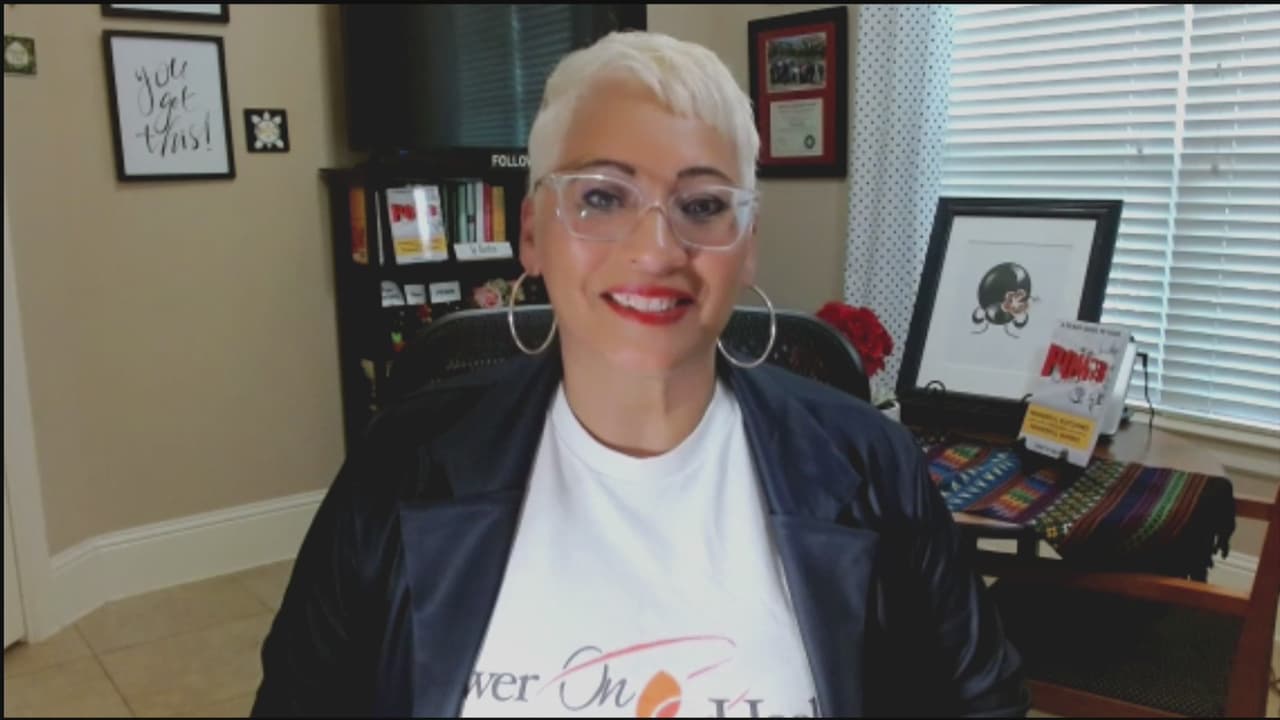 Ivette Mayo, de Power on Heels Fund, explica los programas de ayuda a las mujeres en el ámbito laboral y personal.