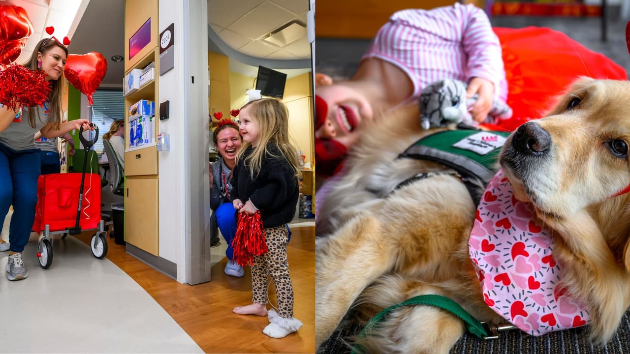 Pacientes celebran el Mes Americano del Corazón con dulces, osos de peluche y un perrito de terapia